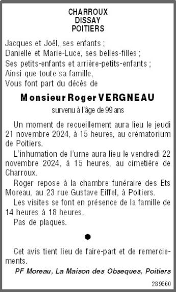 Décédé à Poitiers (86000, France) le jeudi 14 novembre 2024 à l'âge de 99 ans