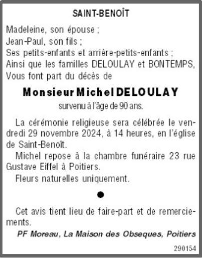 Décédé à Poitiers (86000, France) le dimanche 24 novembre 2024 à l'âge de 90 ans