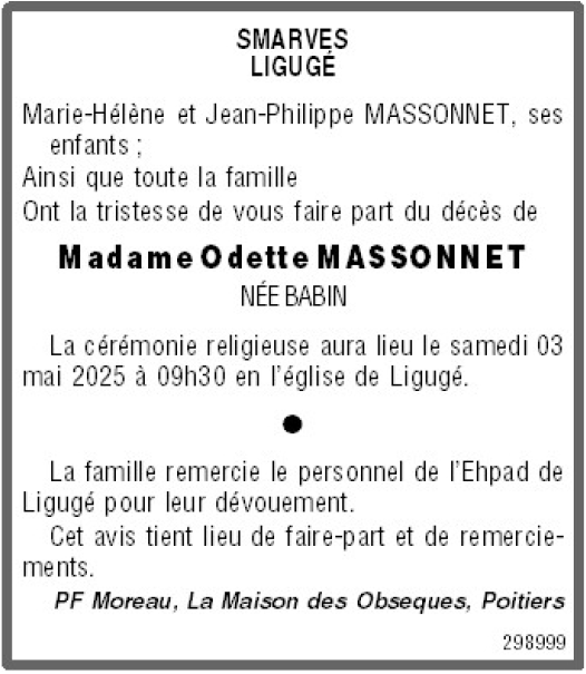 Décédée à Ligugé (86240, France) le samedi 26 avril 2025 à l'âge de 94 ans
