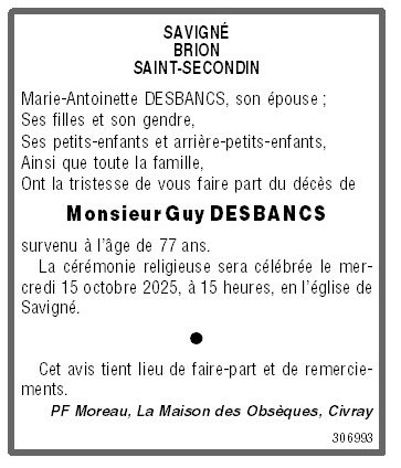 Décédé à Poitiers (86000, France) le mercredi 8 octobre 2025 à l'âge de 77 ans
