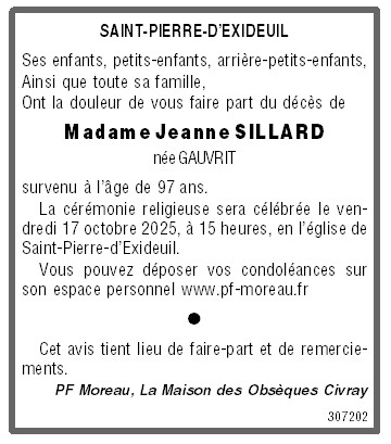 Décédée à Saint-Benoît (86280, France) le lundi 13 octobre 2025 à l'âge de 97 ans