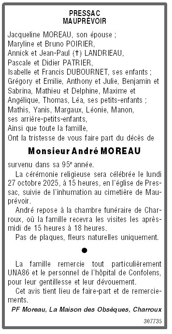 Décédé à Confolens (16500, France) le jeudi 23 octobre 2025 à l'âge de 94 ans