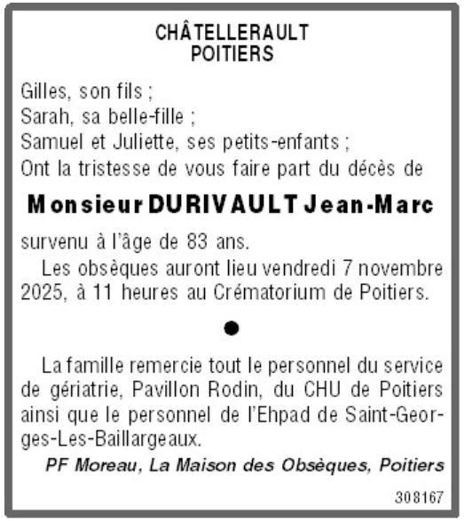 Décédé à Poitiers (86000, France) le vendredi 31 octobre 2025 à l'âge de 83 ans