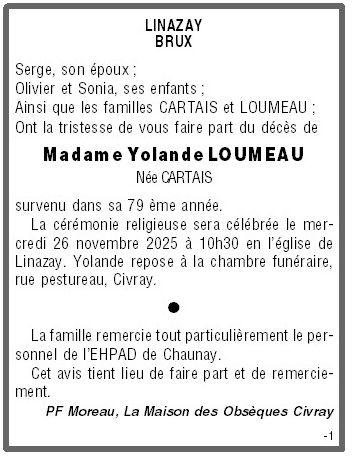 Décédée à Chaunay (86510, France) le samedi 22 novembre 2025 à l'âge de 78 ans