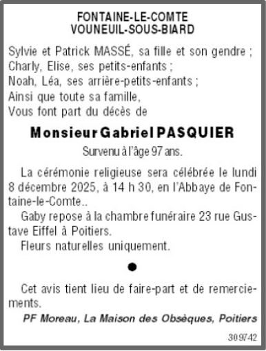 Décédé à Poitiers (86000, France) le mardi 2 décembre 2025 à l'âge de 97 ans