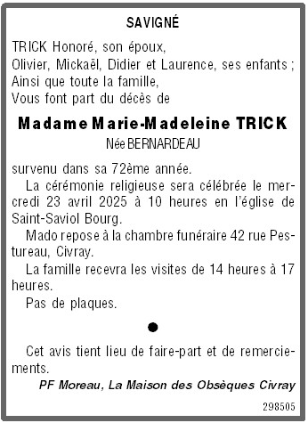 Madame Marie-Madeleine TRICK née BERNARDEAU