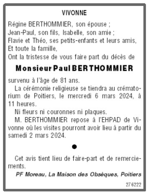Epoux de Madame Régine, Claudine, Lucienne BERTHOMMIER
