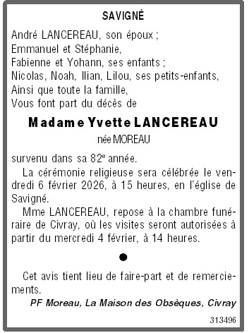 Epouse de Monsieur André LANCEREAU