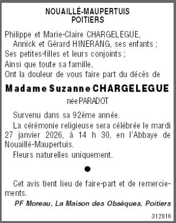 Madame Suzanne CHARGELEGUE née PARADOT