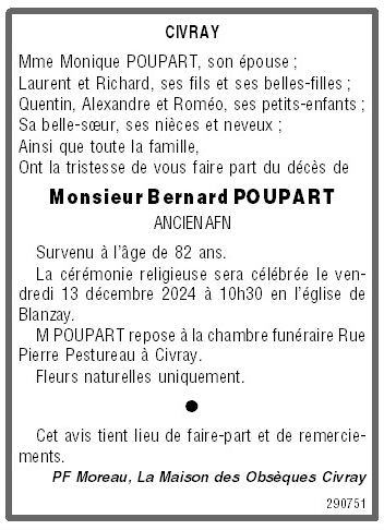 Décédé à Poitiers (86000, France) le mercredi 4 décembre 2024 à l'âge de 82 ans
