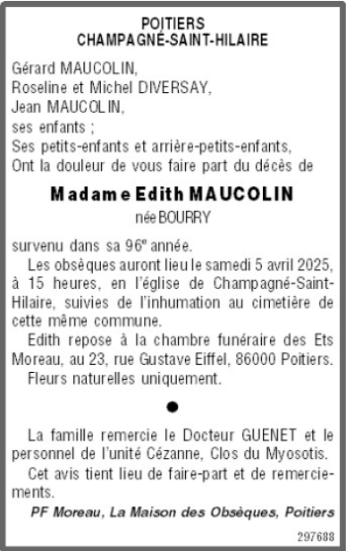 Madame Edith MAUCOLIN née BOURRY