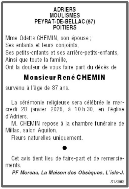 Décédé à Montmorillon (86500, France) le vendredi 23 janvier 2026 à l'âge de 87 ans