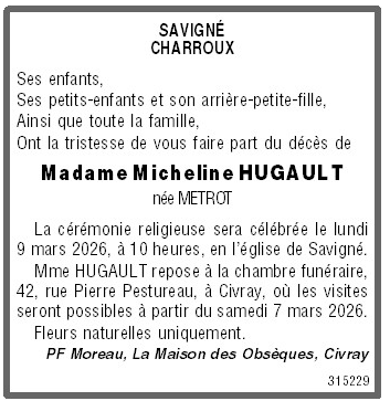 Madame Micheline HUGAULT née METROT