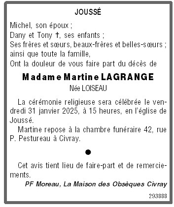 Madame Martine LAGRANGE née LOISEAU