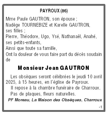 Décédé à Payroux (86350, France) le dimanche 6 avril 2025 à l'âge de 78 ans