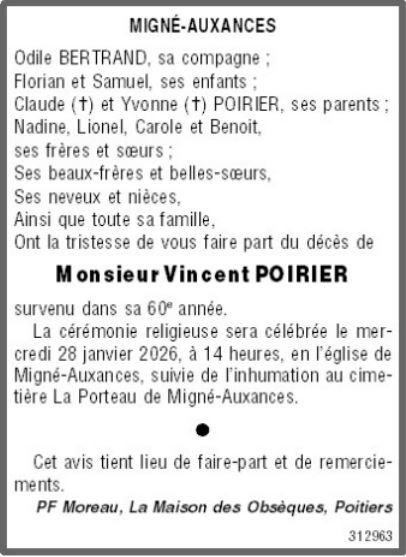 Décédé à Migné-Auxances (86440, France) le mardi 13 janvier 2026 à l'âge de 59 ans