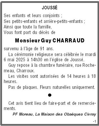 Veuf de Madame Paulette CHARRAUD