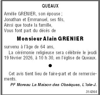 Décédé à Queaux (86150, France) le vendredi 13 février 2026 à l'âge de 64 ans