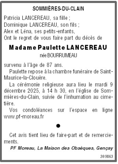 Madame Paulette LANCEREAU née BOURRUMEAU