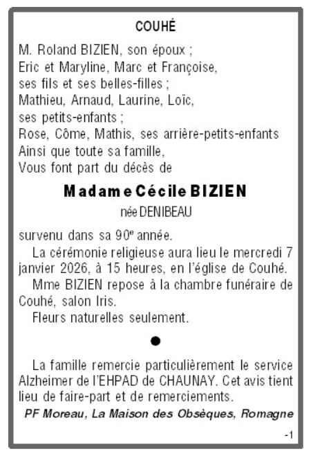Madame Cécile BIZIEN née DENIBEAU