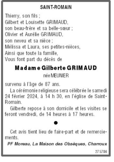Décédée à Poitiers (86000, France) le mercredi 21 février 2024 à l'âge de 87 ans