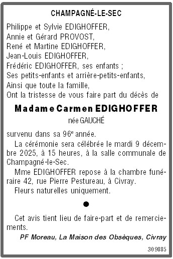 Madame Carmen EDIGHOFFER née GAUCHÉ