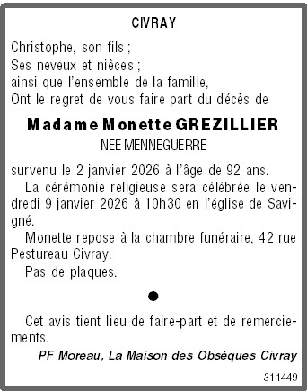 Madame Monette GREZILLIER née MENNEGUERRE