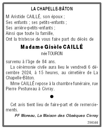 Décédée à Poitiers (86000, France) le lundi 2 décembre 2024 à l'âge de 84 ans