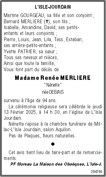 Veuve de Monsieur René MERLIERE